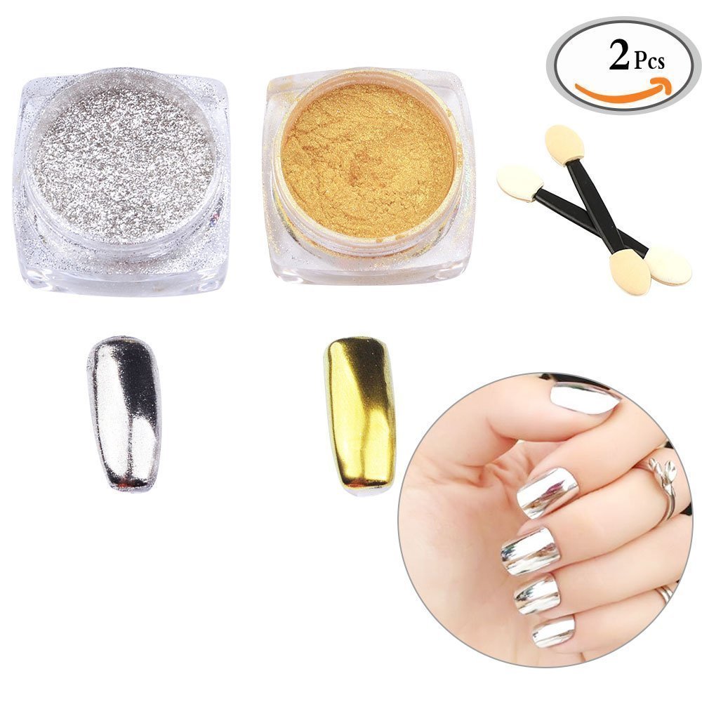 2 Farben Nagel Glitzerpuder Nail Glitter Powder Shinning Nail Mirror Powder Nail Art Glitter Staub Nagel Pigment Nageldesign Nail Art Spiegel Glitzer Puder Set Molie